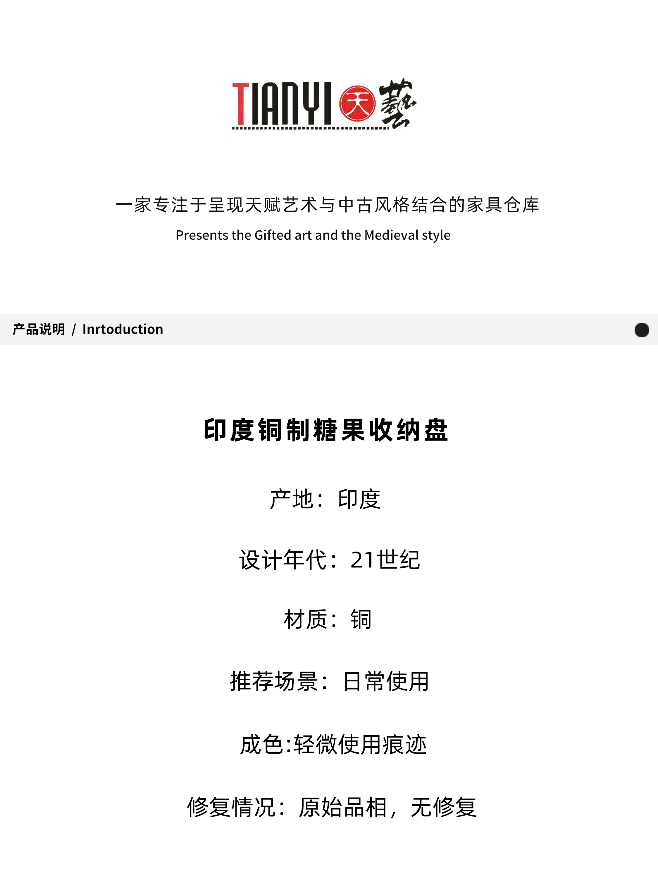 铜制糖果盘收纳盘16*10*17.8cm