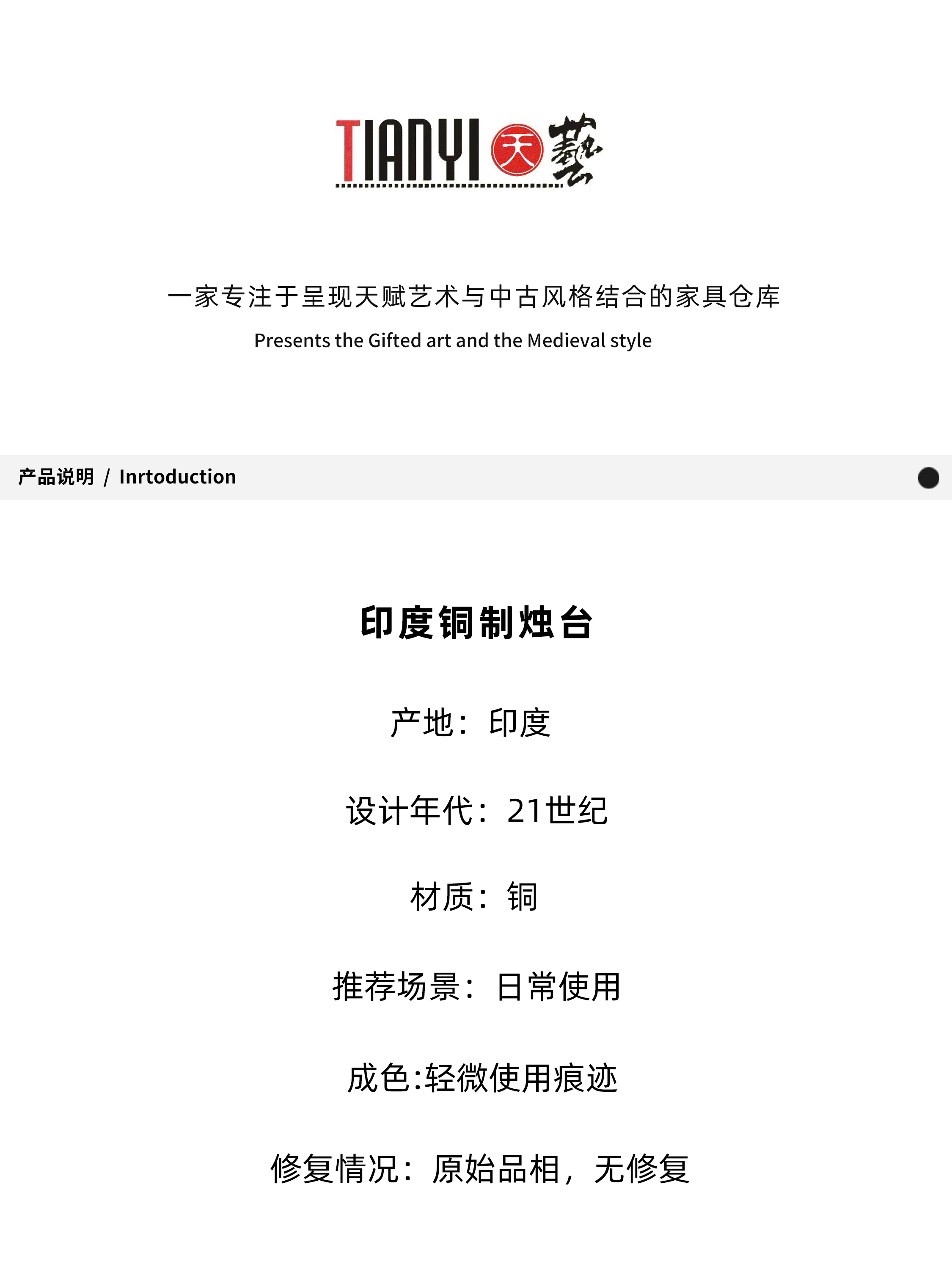 铜制烛台11.2*7.4*22.4cm
